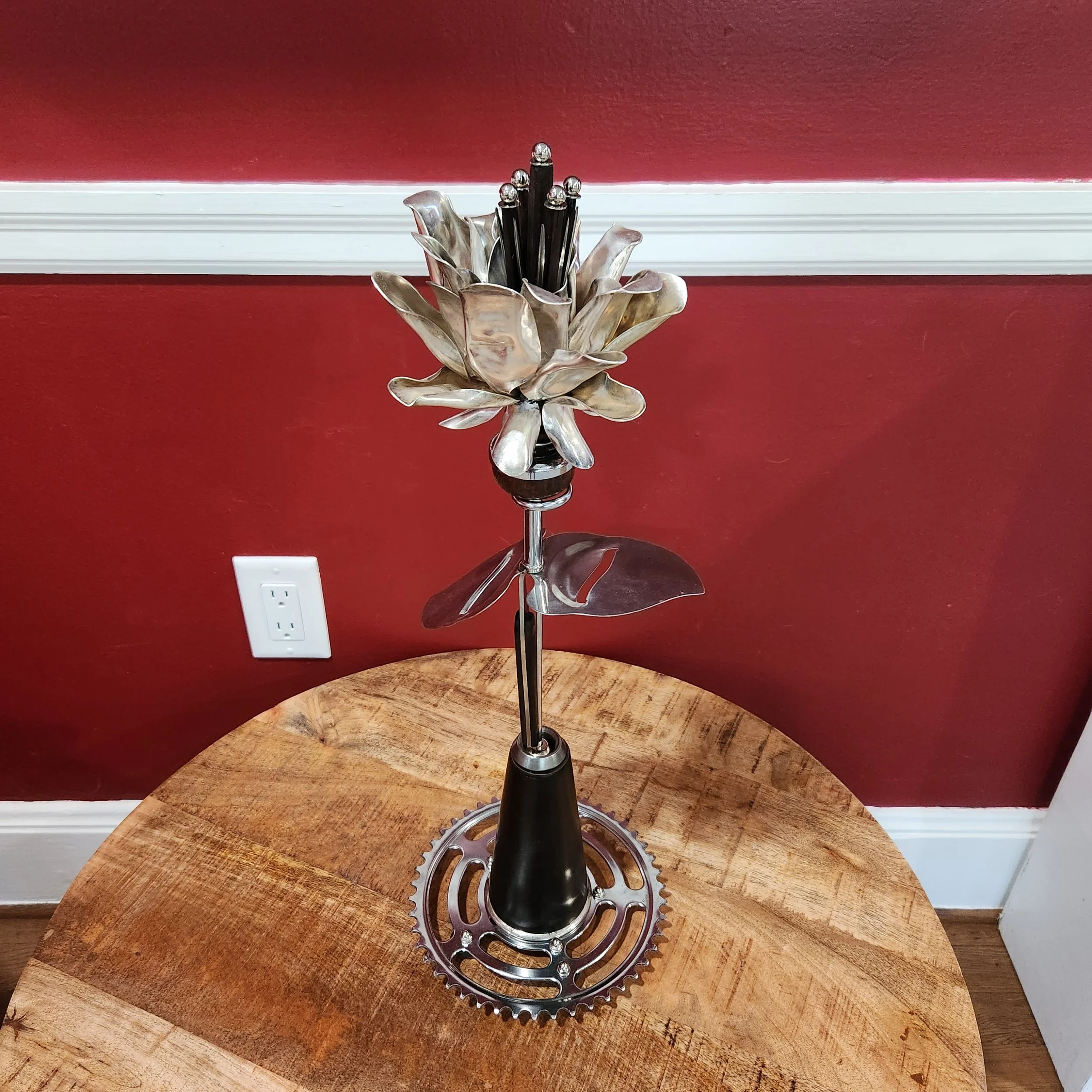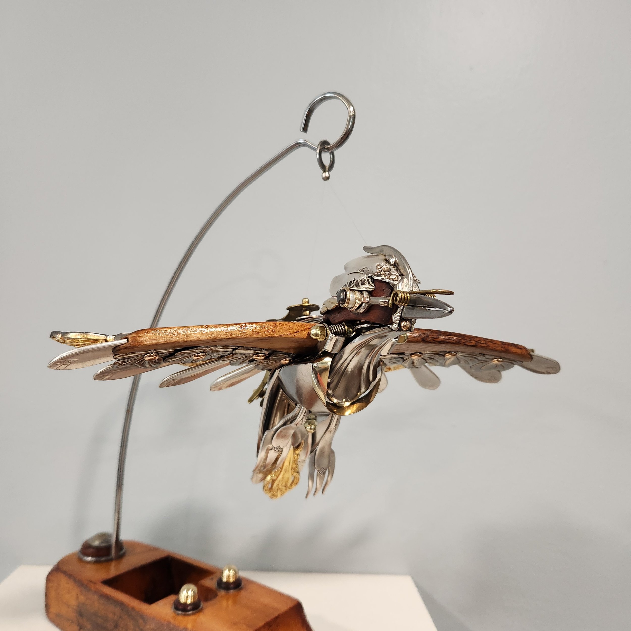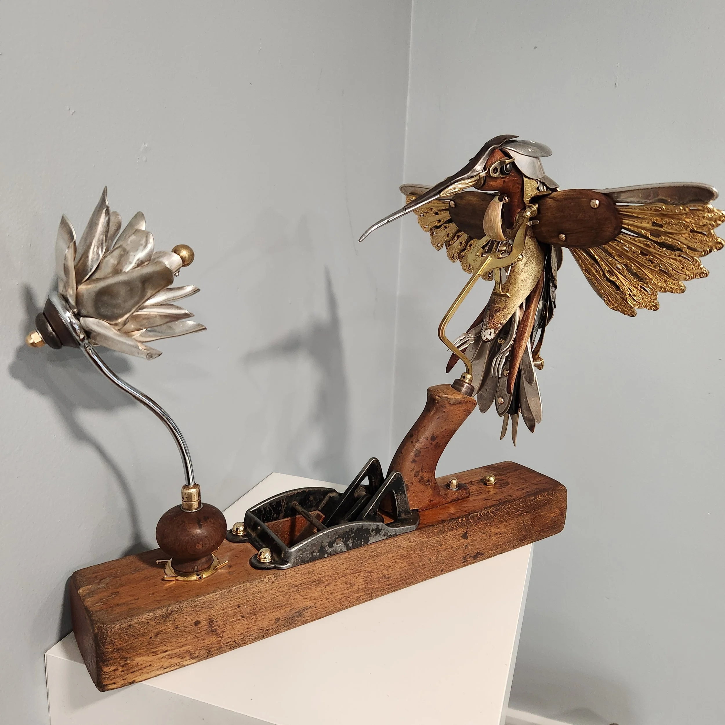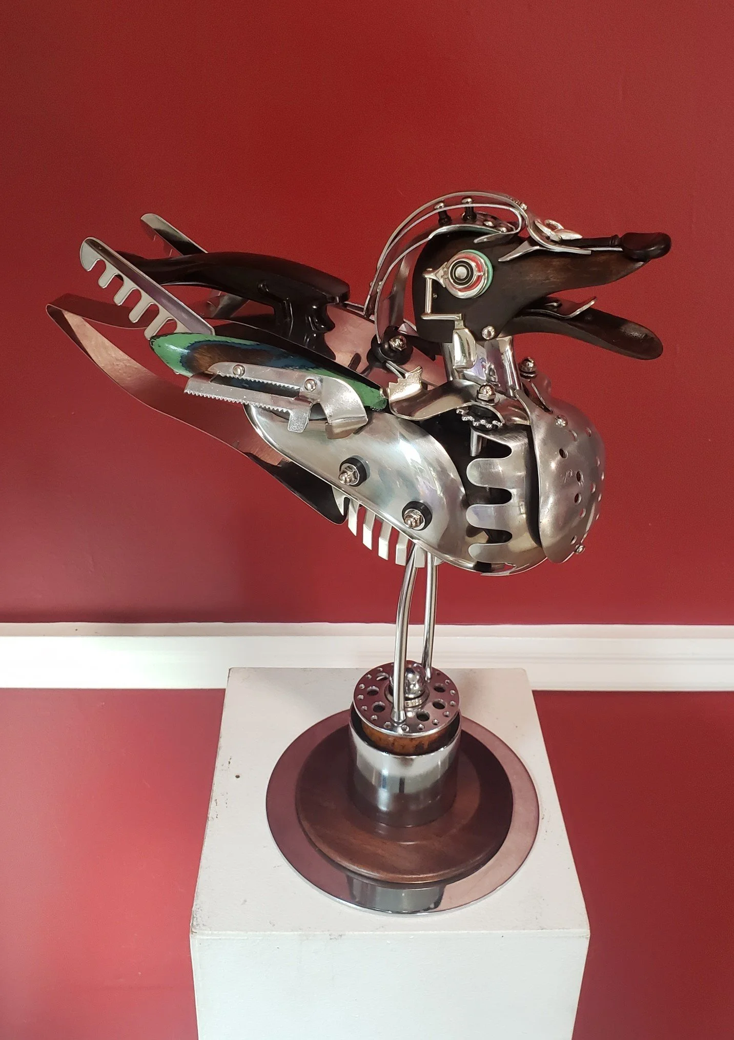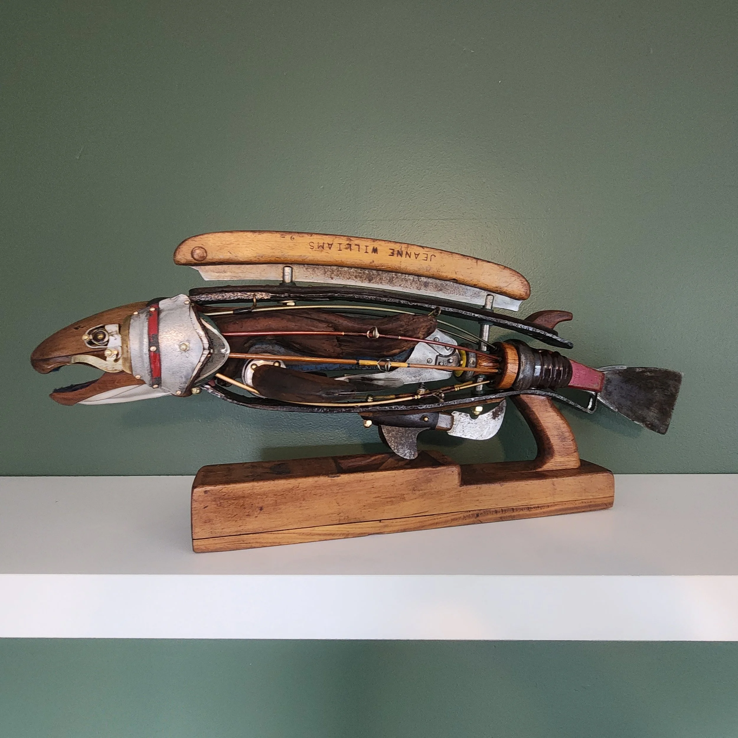 Coleman is the culmination of many years of work and several incarnations. I had the vision for this Sockeye yet it would never fully come together until the discovery of the table leg that creates the undulating movement in the body. From there, I began to build from that frame constructing and incorporating each piece from multiple items and solely by hand.